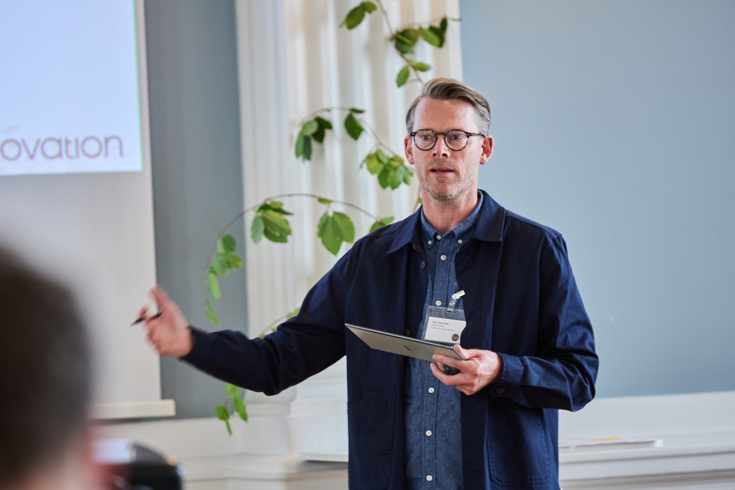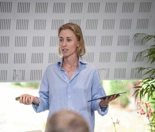 Clara forklarede, hvordan de fem maksimer for social innovation kan bruges til at styrke den lokale inddragelse og handlekraft i den grønne omstilling, bl.a. gennem indsatser som Vores Landskaber.